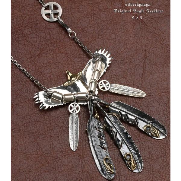 Silverkyasya シルバー925素材 燻し加工 特大イーグルネックレス 925 925 特大 金爪フェザーネックレス 925 925 燻し加工 豪華カスタム Crescent Island
