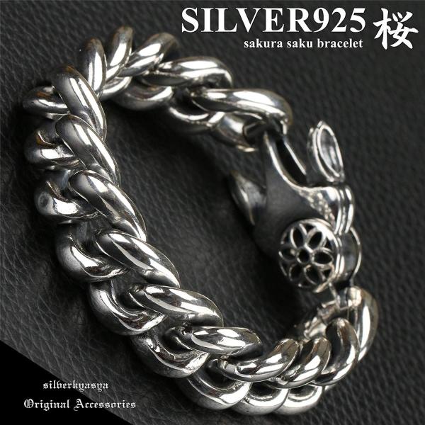 Silverkyasya 超厚重シルバー925 シルバー 桜 ブレスレット メンズ シルバー さくら さくら サクラ サクラ 925チェーン Idブレスレット シル ハロー店